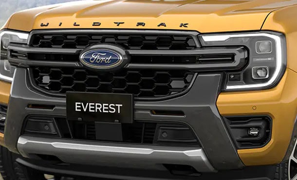 Cụm đèn pha hình chữ C đặc trưng bao quanh tấm lưới tản nhiệt trên xe Everest tạo nên một thiết kế hài hòa, tương xứng với sức mạnh của chiếc xe.
