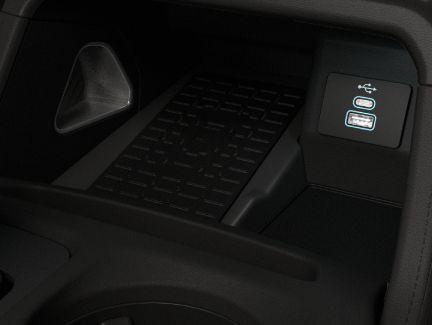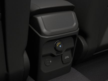Cổng USB được trang bị ở hàng ghế trước và hàng ghế thứ hai. Ổ cắm 12V cho hàng ghế thứ ba và khoang hành lý. Bộ biến tần 400watt phía sau bảng điều khiển trung tâm.