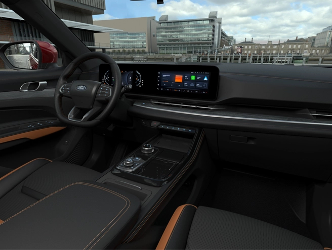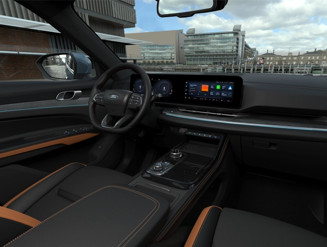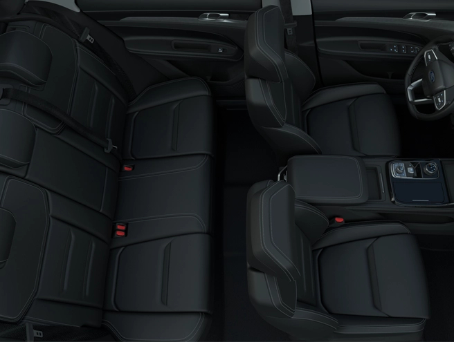 Ghế bọc da sang trọng, không gian rộng rãi. Ford Territory mới mang đến cảm giác thoải mái, êm ái suốt hành trìnhạo, tiên phong trong triết lý thiết kế mới của Ford.