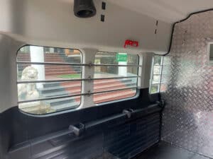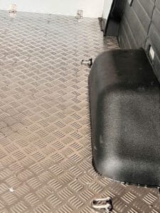 Sàn xe được cải tạo lót bằng simili, hoặc nếu khách hàng có nhu cầu chở hàng hóa nặng và cần độ bền cao có thể trang bị lót sàn bằng inox 304, nhôm lá me….